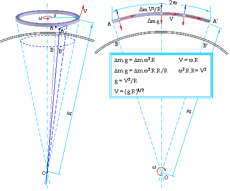 Let's cut by line AO and unroll the cone on a surface ... I will live you to decide where will centrifugal force will point out after such transformation ? I prefer polar coordinates simply because this is the real case. |